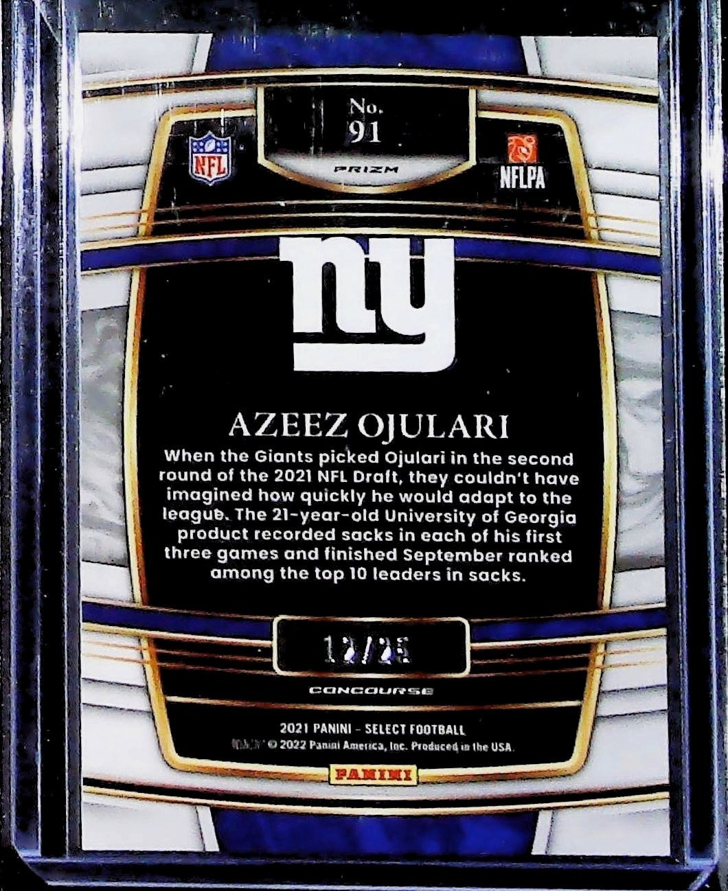 2021 Panini Select Football Azeez Ojulari Rookie Concourse Tie Dye /25 GIANTS RC