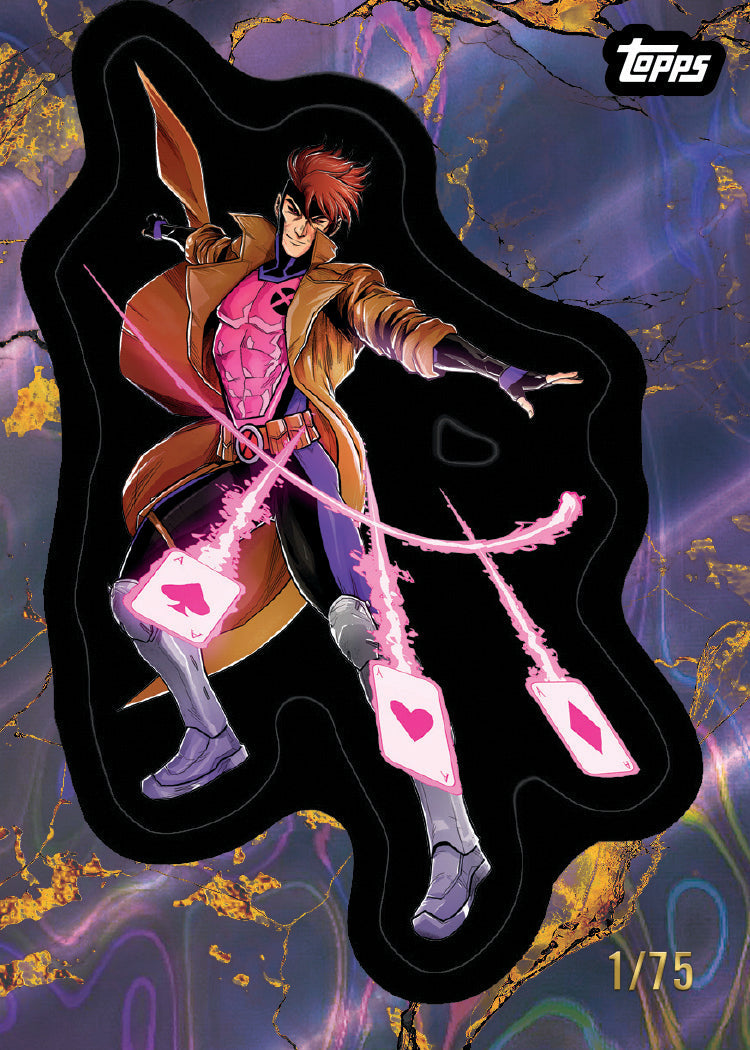 The 150-card Base Set blends iconic artwork from the ’75 and ’76 releases with fresh visuals from the 2000s to today, all elevated by a sleek marble-inspired design that connects past and present in stunning fashion. Autograph cards feature artwork from classic Marvel illustrators, recreated in the style of the original stickers. Original art sketch cards offer one-of-a-kind creations from today’s top comic talent, adding even more chase-worthy hits to this golden celebration.