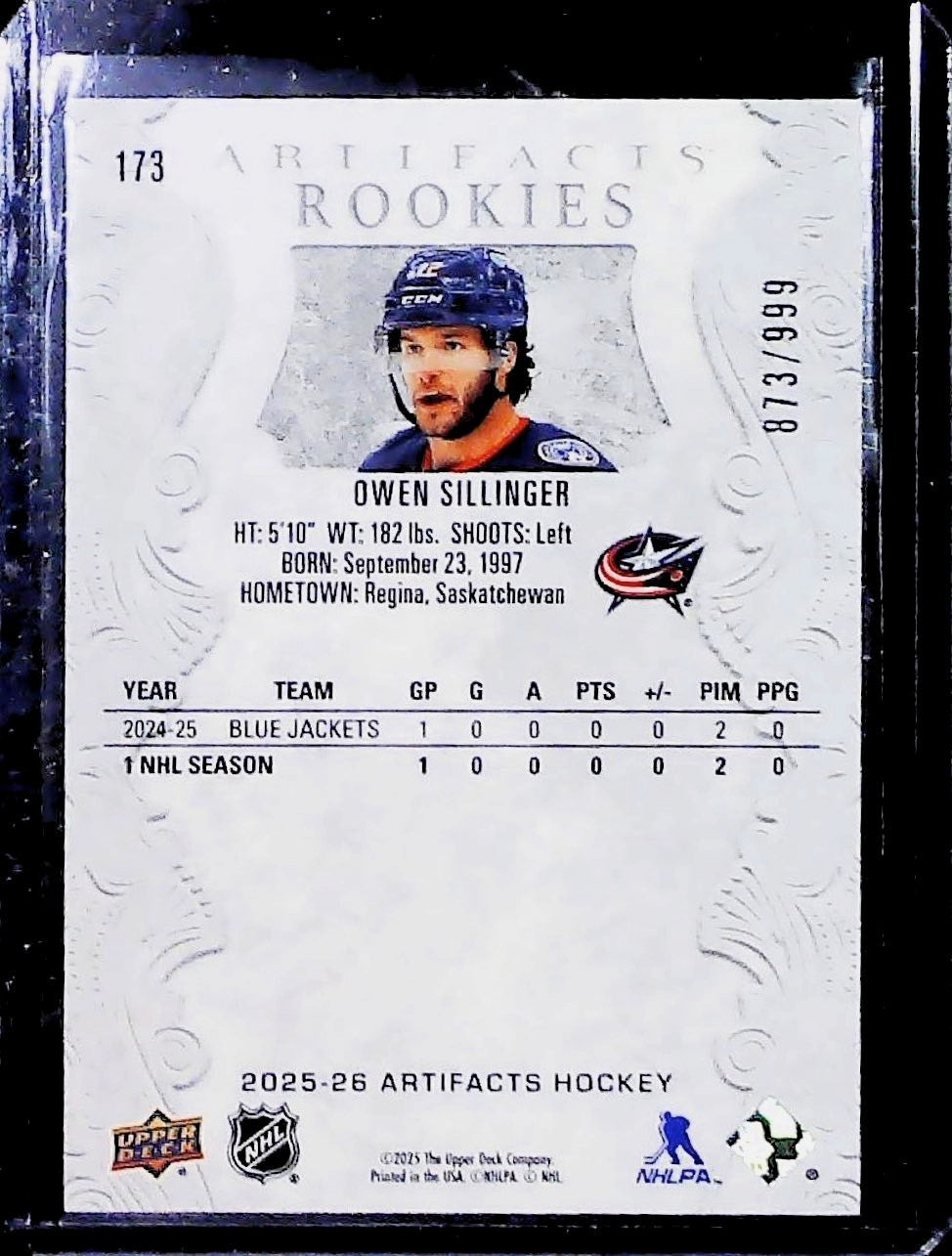 2025-26 Upper Deck Artifacts Hockey Owen Sillinger Rookies /999 RC BLUE JACKETS0