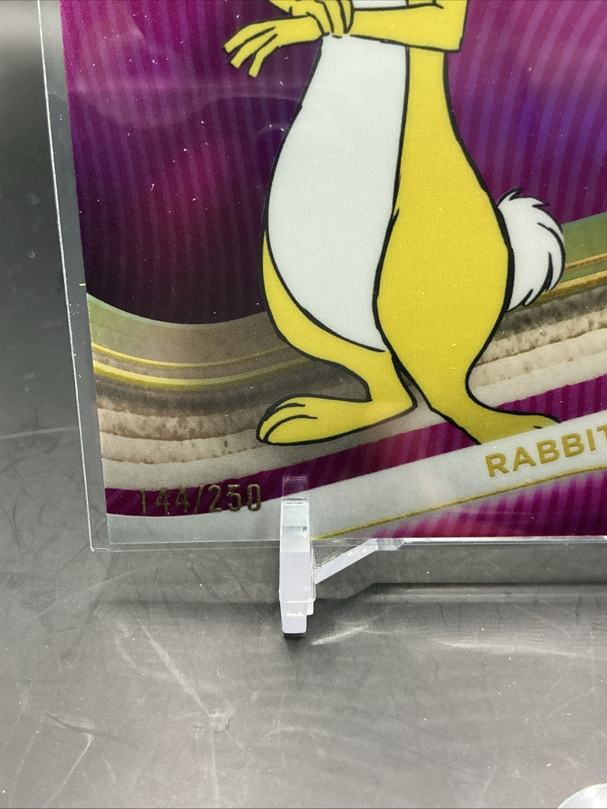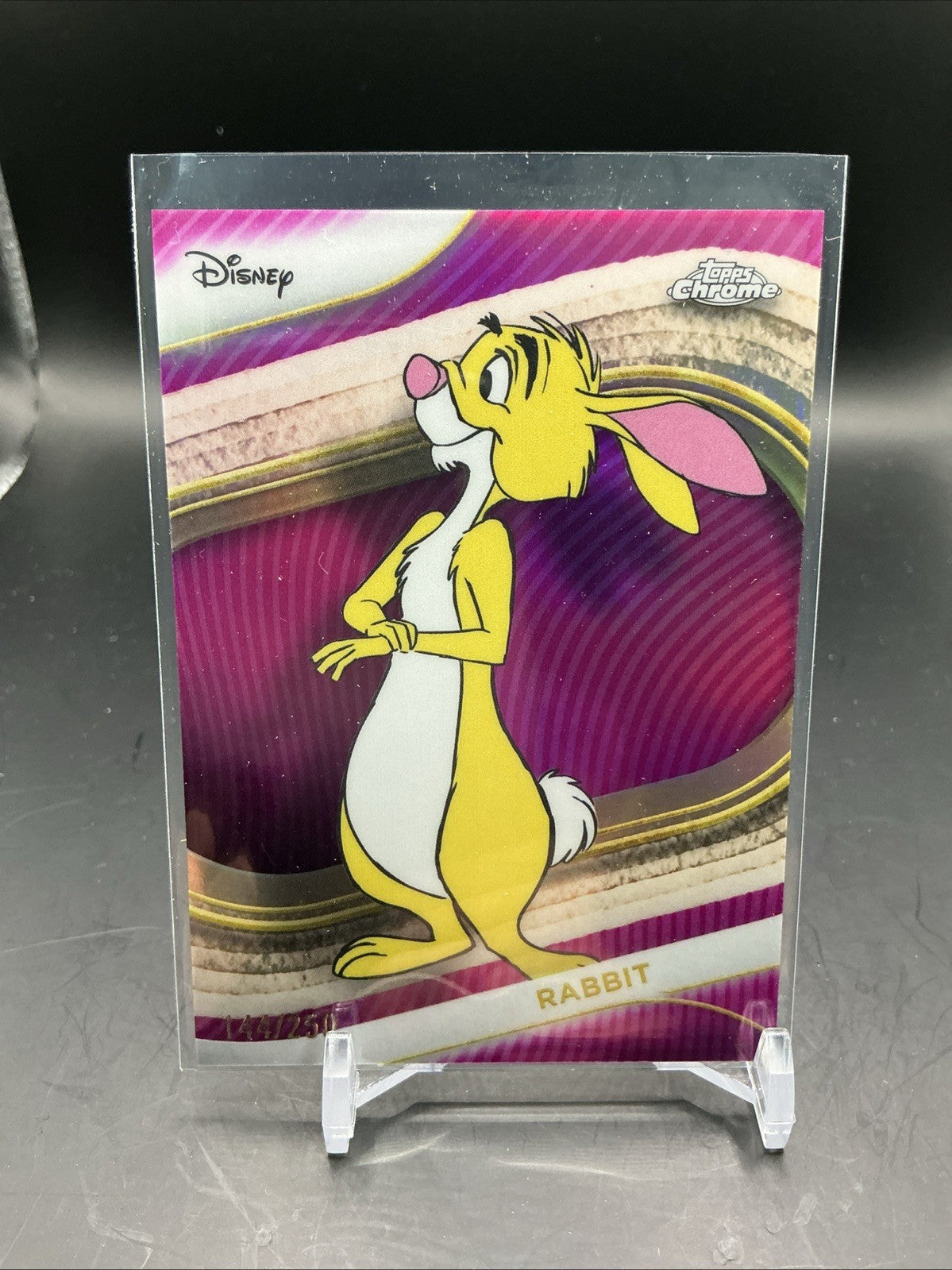The product is a rare and highly sought-after 2025 Topps Chrome Disney Rabbit Pink Refractor trading card numbered #/250. This card features a standard size and belongs to the National Basketball Association (NBA) league. It is an original print with a limited run, part of the Optic insert set. Manufactured by Panini, the card is not autographed, but it is a short print variety that adds to its collectible value. With its unique design and limited availability, this card is a valuable addition to any sports trading card collection.