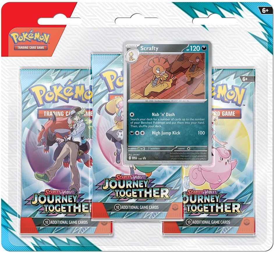 Packed with powerful Pokémon ex, memorable Trainer partnerships, and stunning card artwork, Scarlet & Violet—Journey Together celebrates the unstoppable power of friendship in the Pokémon Trading Card Game.