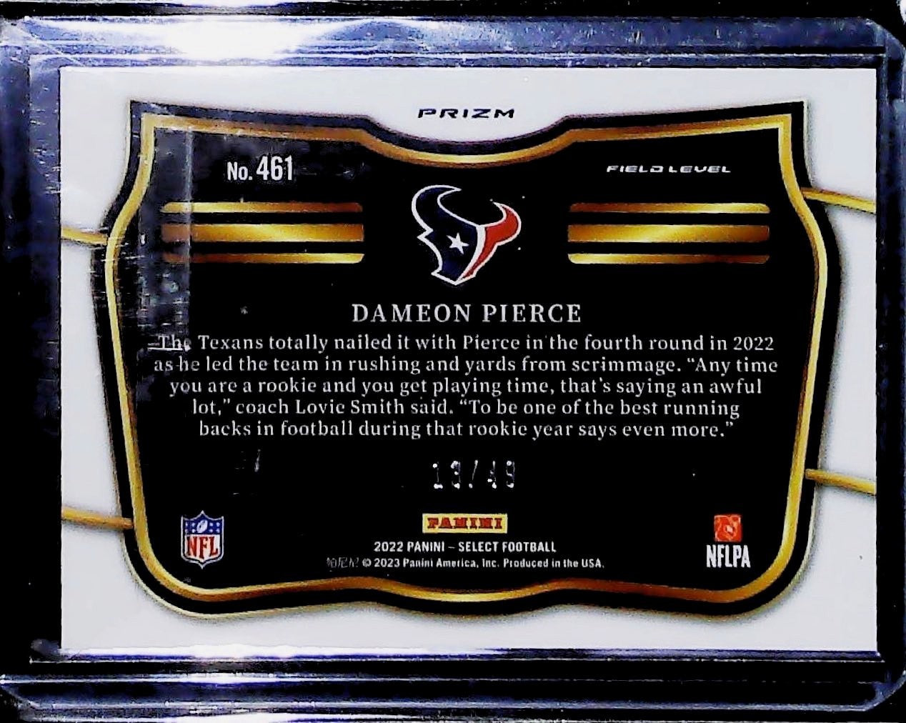 2022 Panini Select Football Dameon Pierce Rookie Blue Field Level /49 RC CHIEFS0