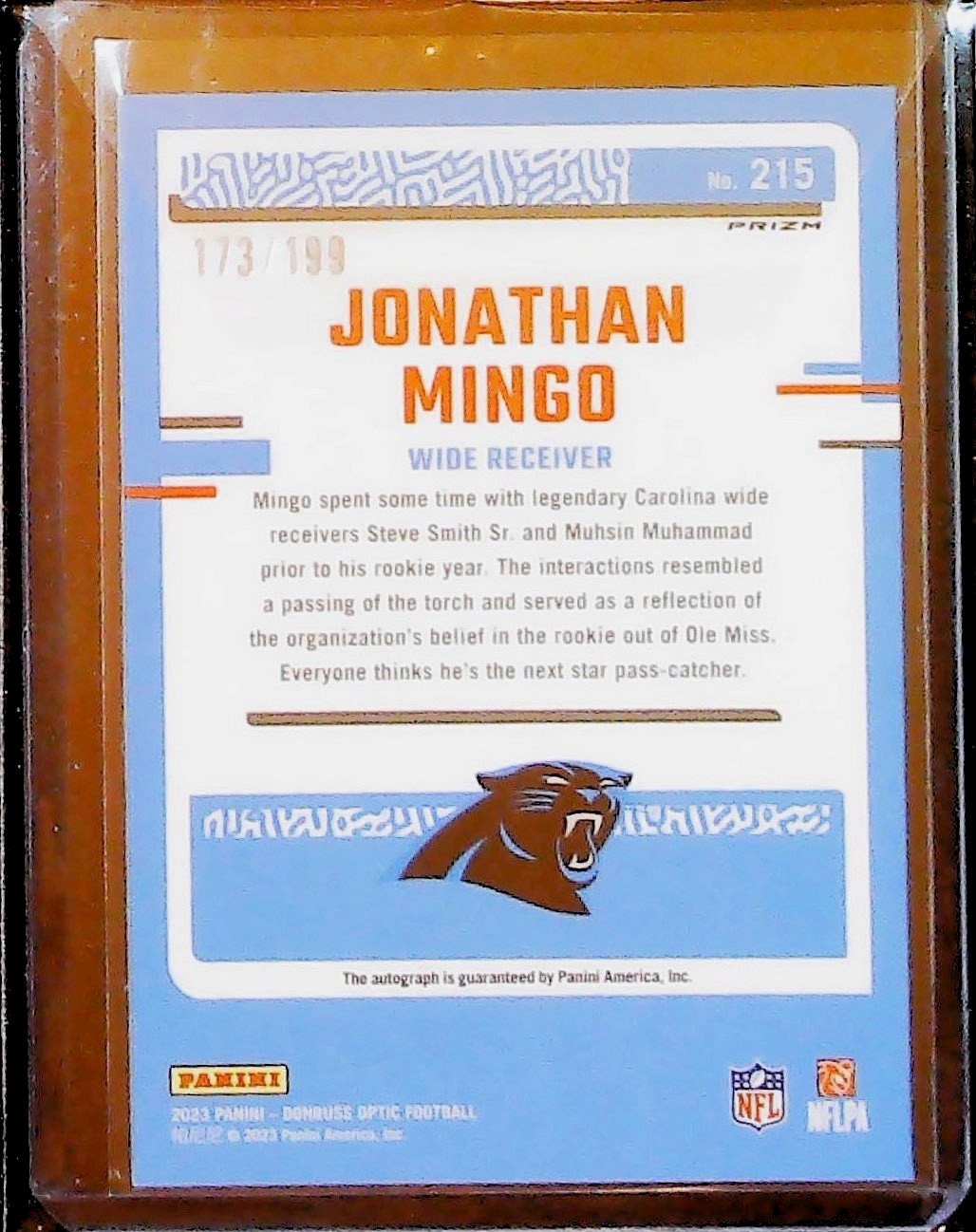2023 Donruss Optic Football Jonathan Mingo Rookie Auto RC PANTHERS1