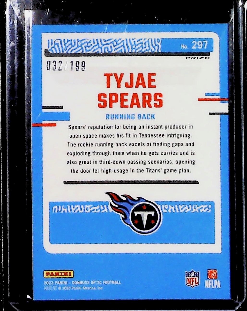 2023 Donruss Optic Football Tyjae Spears Rookie Blue Prizm /199 RC TITANS