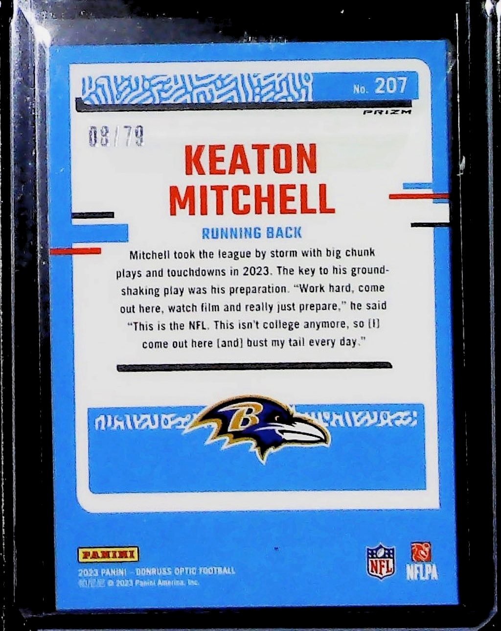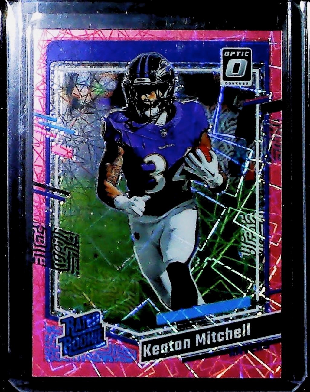 2023 Panini Donruss Optic Football Keaton Mitchell Rookie Pink Velocity /79 RC