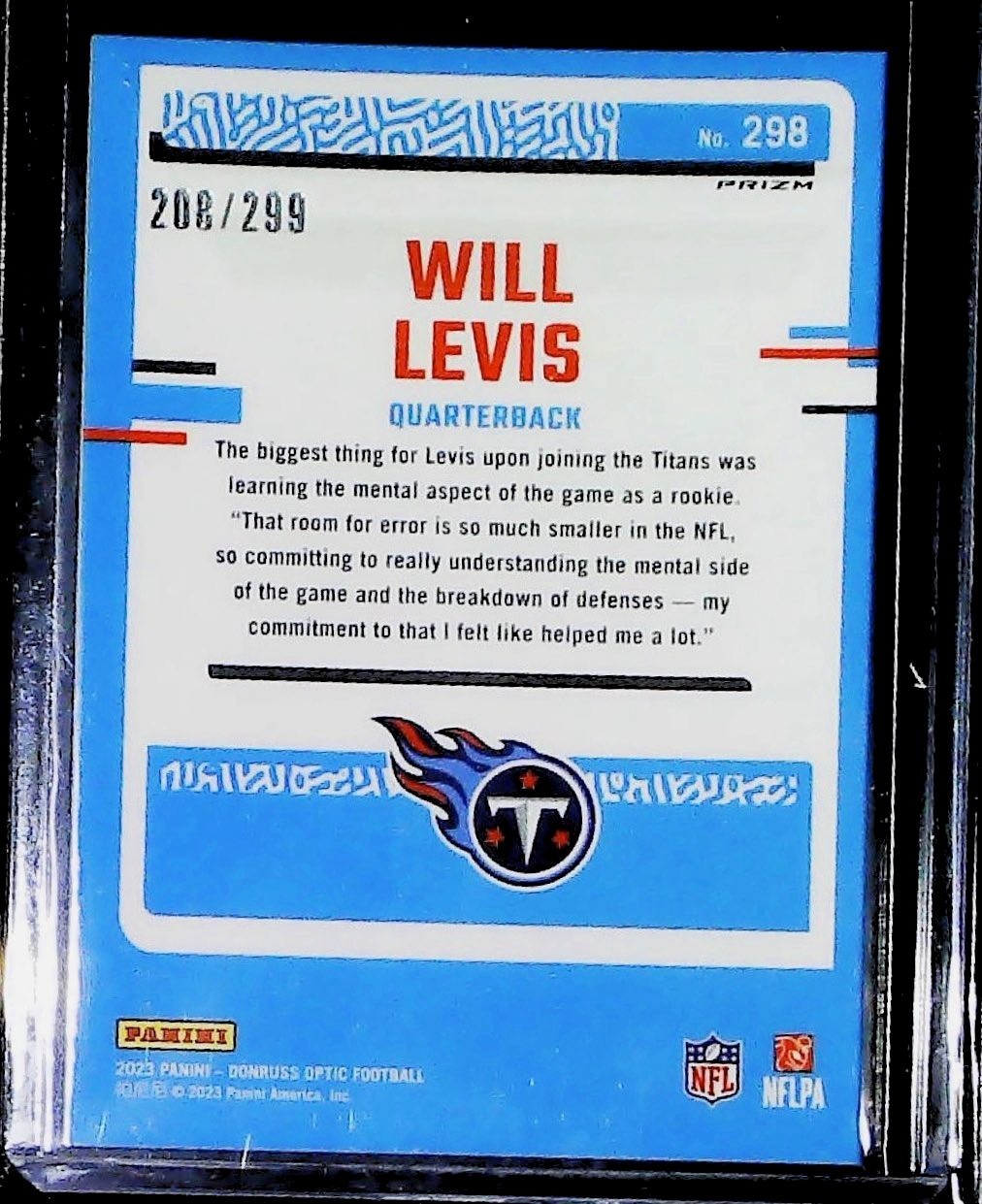 2023 Panini Donruss Optic Football Will Levis Rookie Aqua /299 RC TITANS