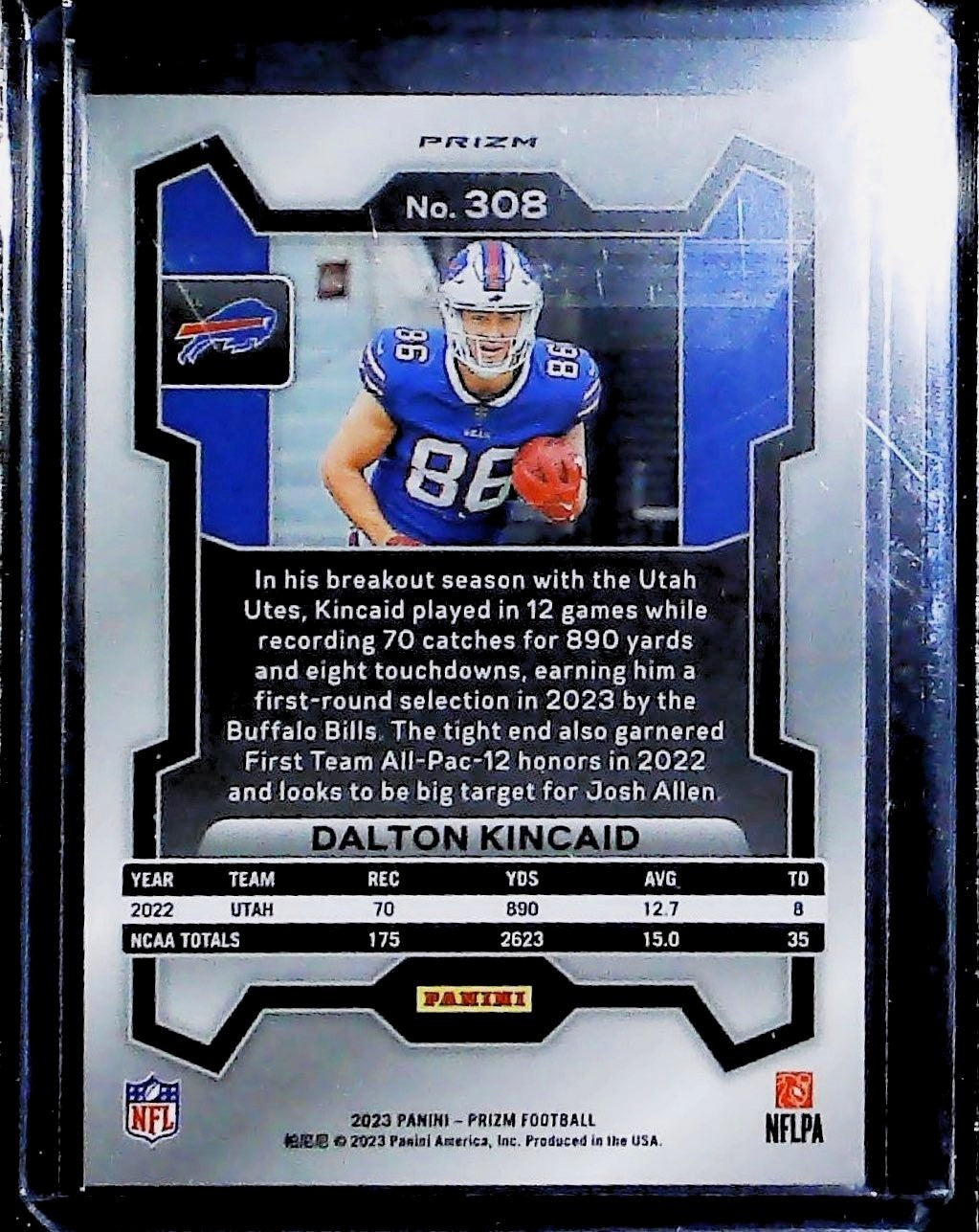2023 Panini Prizm Football Dalton Kincaid Rookie Silver Prizm RC BILLS