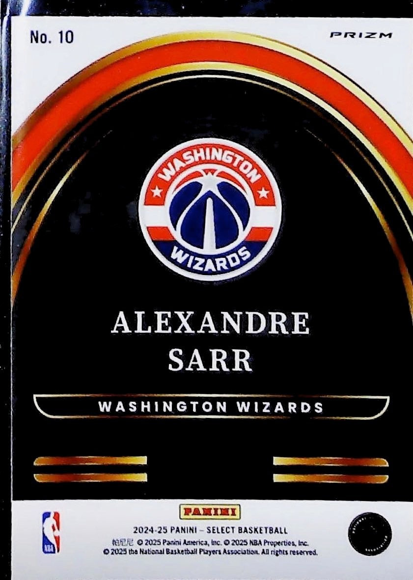 2024-25 Panini Select Basketball Alexandre Sarr Future Rookie Silver Prizm RC