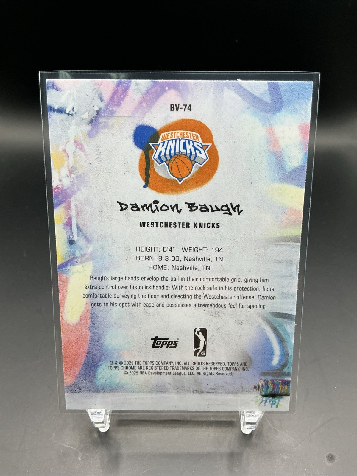 The 2024-25 Topps G League Basketball DAMION BAUGH Chrome #BV74 is a highly sought-after sports trading card featuring the NBA G-League player Damion Baugh. Manufactured by Topps, this card is part of the 2024-25 Topps G League set and is serial numbered for authenticity. With a parallel/variety design, this card is a valuable addition for collectors of basketball trading cards, especially those interested in NBA G-League players like Damion Baugh.