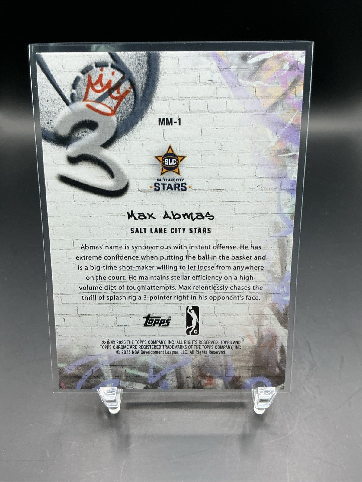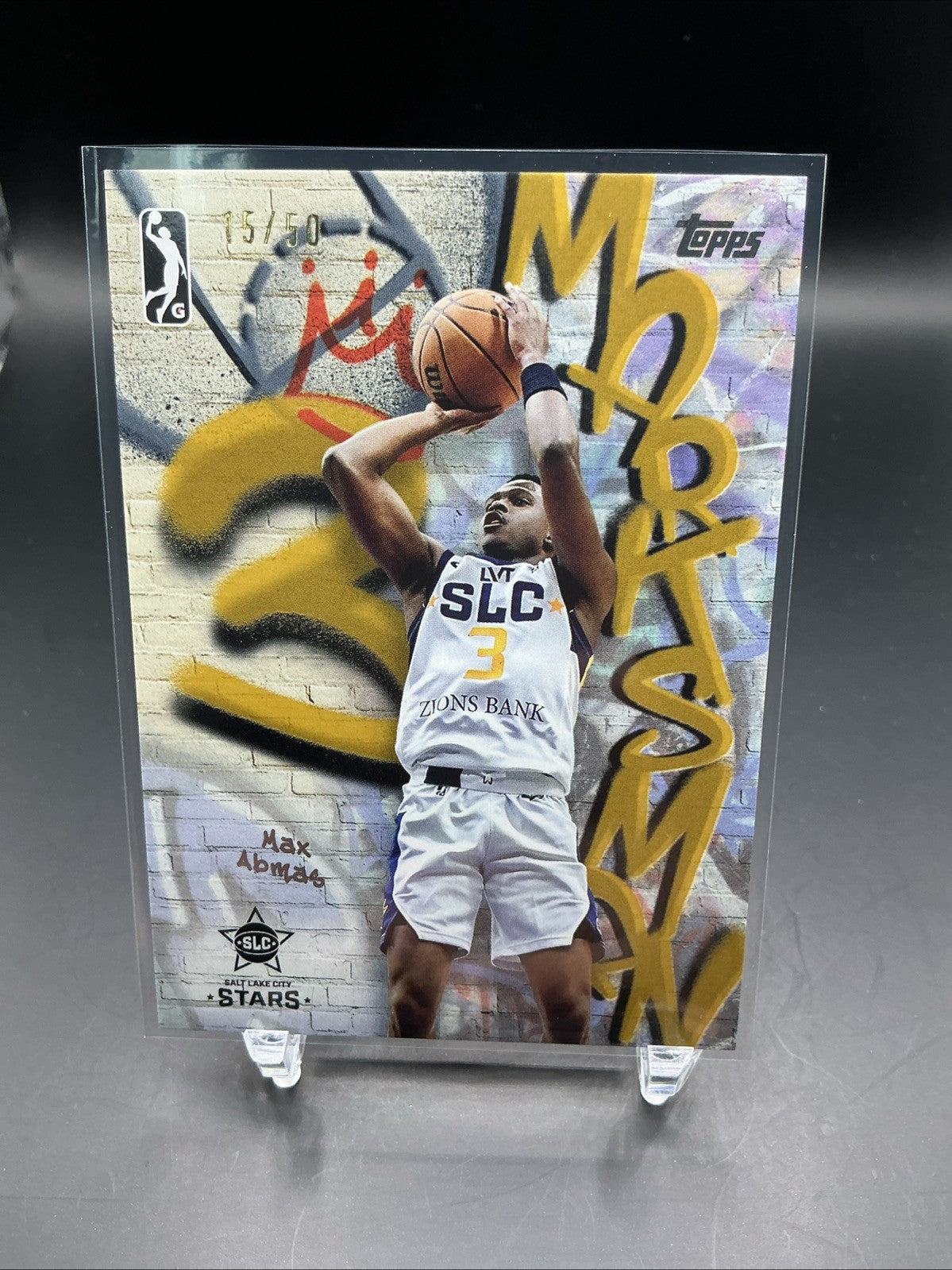 The 2024-25 Topps G-League Marksman Max Abmas Gold trading card is a rare and valuable collectible for basketball fans. This limited edition card features Max Abmas, a standout player from the G-League, and is serial numbered out of only 50 copies made. Manufactured by Topps, this original card showcases Abmas in a 3½" x 2½" format, making it a sought-after item for collectors looking to add a unique piece to their sports memorabilia collection.