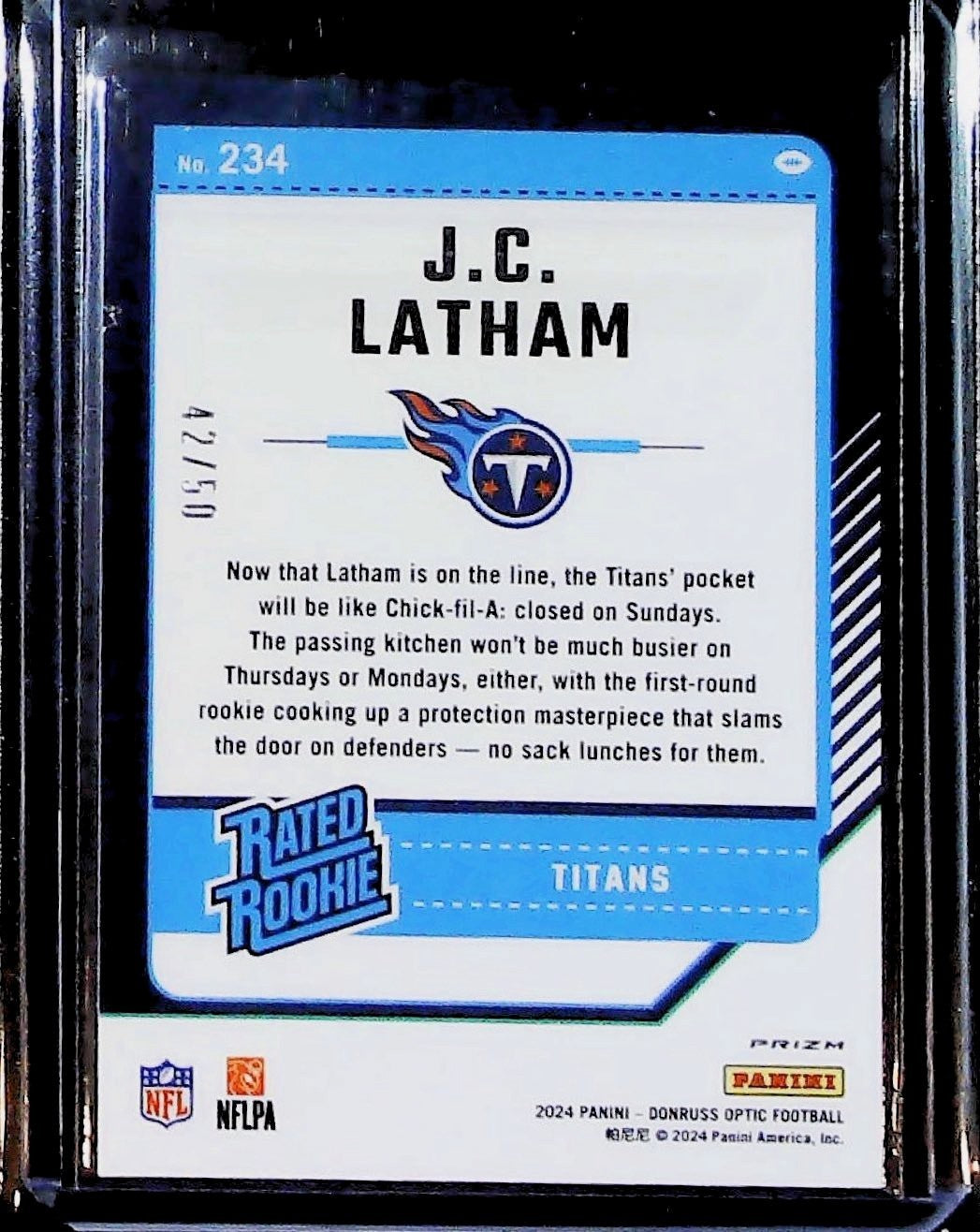 2024 Donruss Optic JC Latham Rookie Lime Green /50 *RC* TITANS0