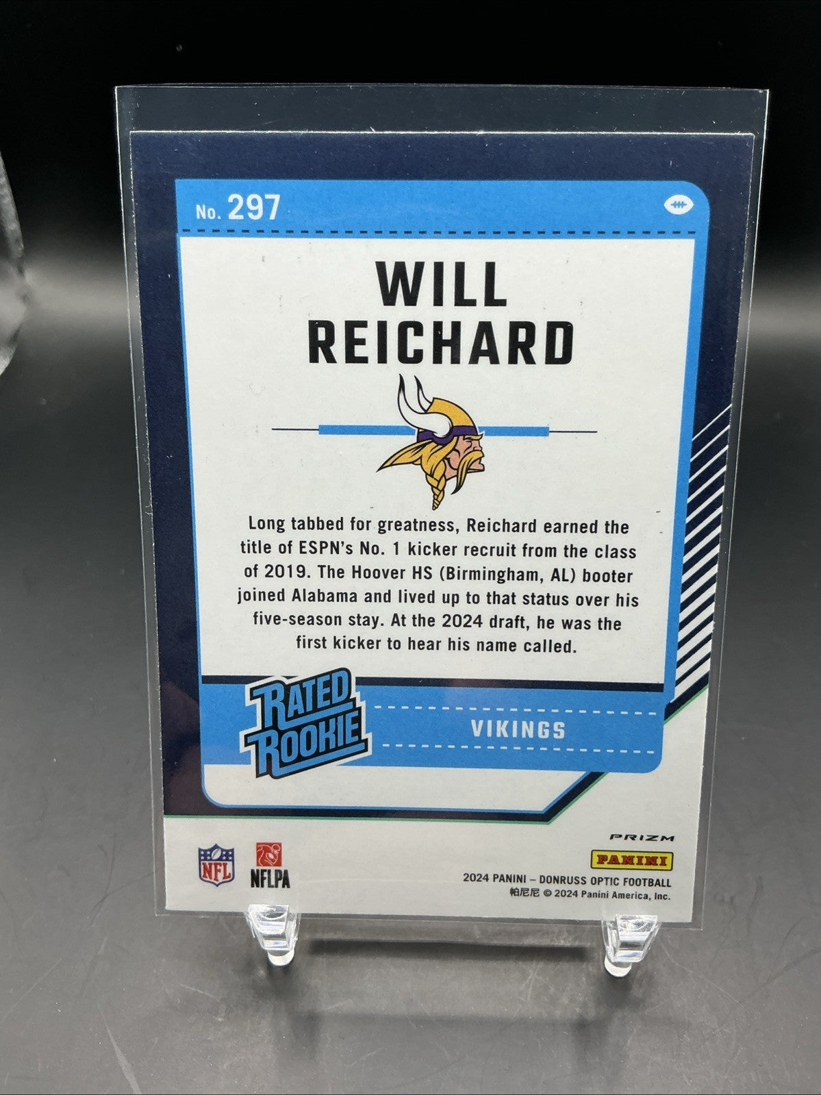 2024 Panini Optic Will Reichard #297 RC Rated Rookie Rocket Emoji Vikings SSP