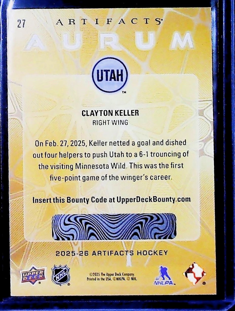 2025-26 Upper Deck Artifacts Hockey Clayton Keller AURUM UNUSED REDEMPTION0