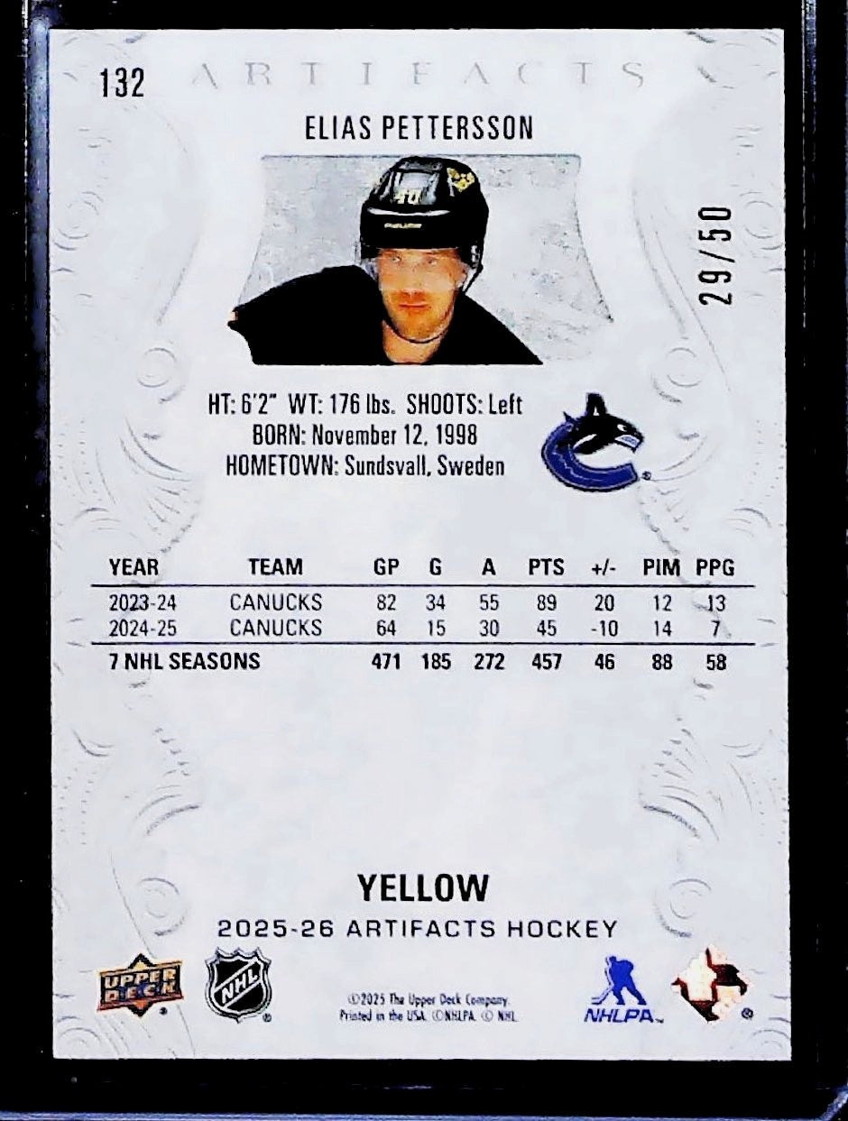 2025-26 Upper Deck Artifacts Hockey Elias Pettersson Yellow /50 CANUCKS0