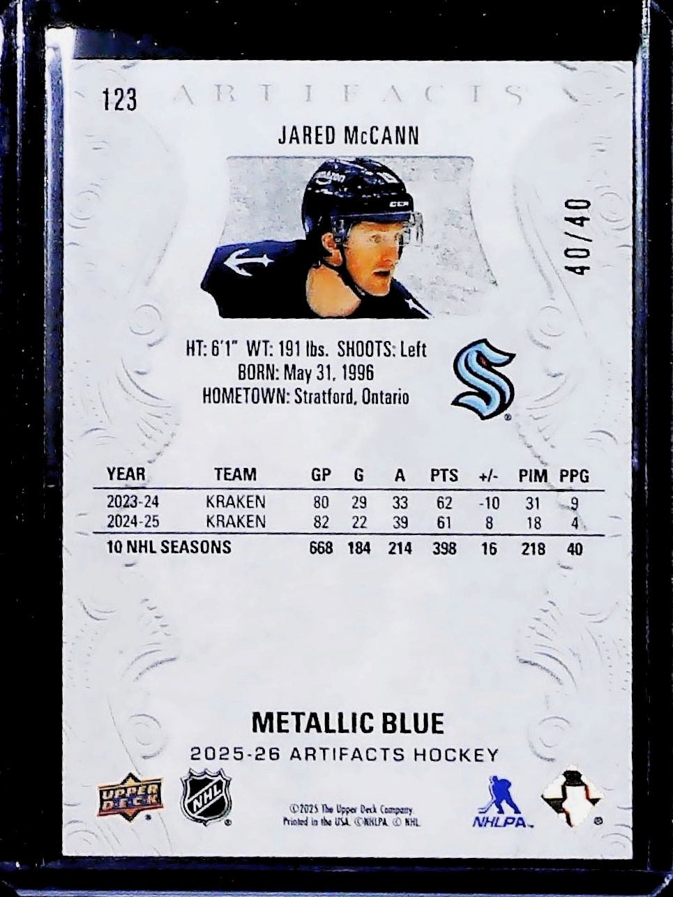 2025-26 Upper Deck Artifacts Hockey Jared McCann Metallic Blue /40 KRAKEN1