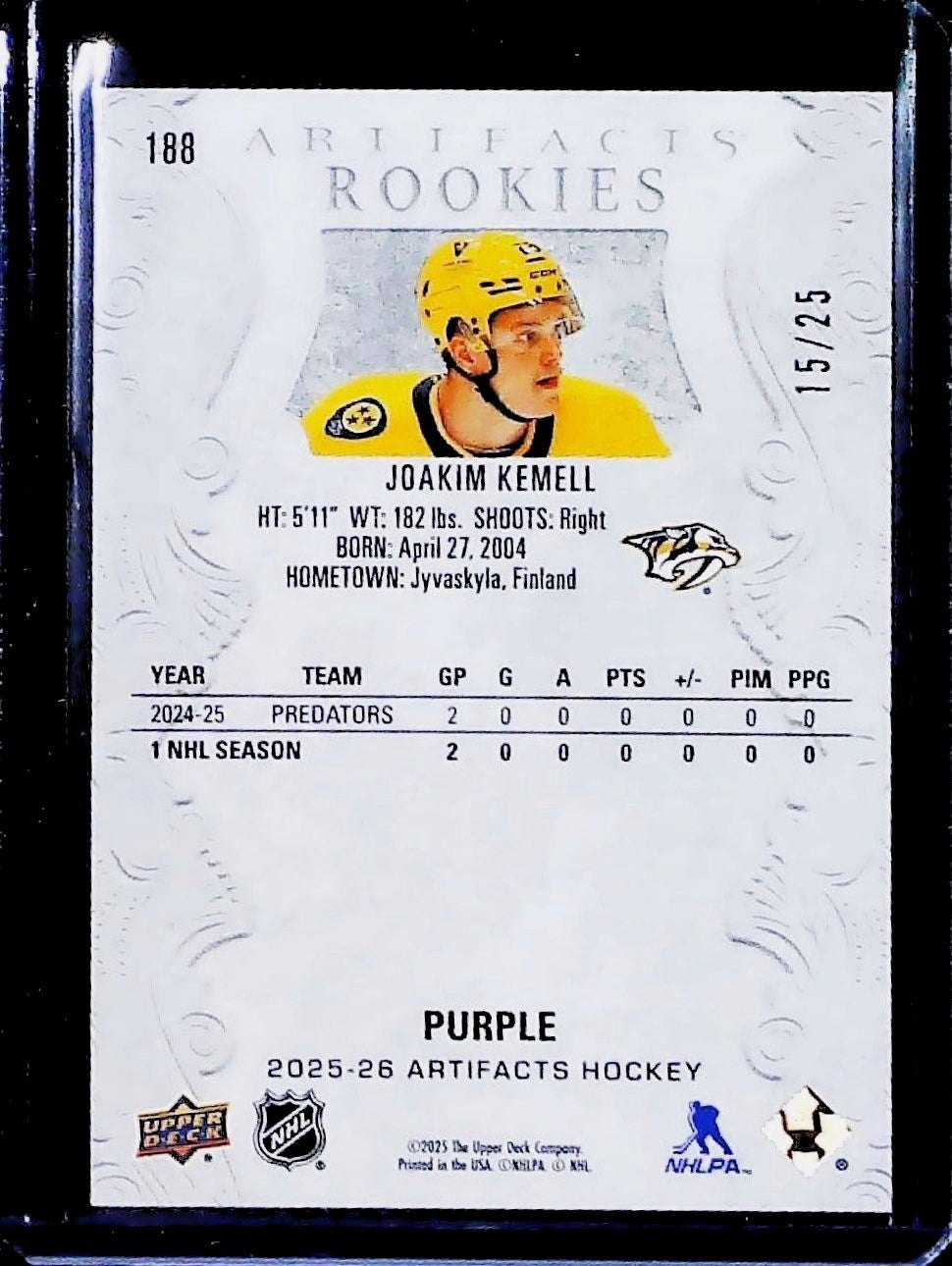 2025-26 Upper Deck Artifacts Hockey Joakim Kemell Rookies Purple /25 PREDATORS1