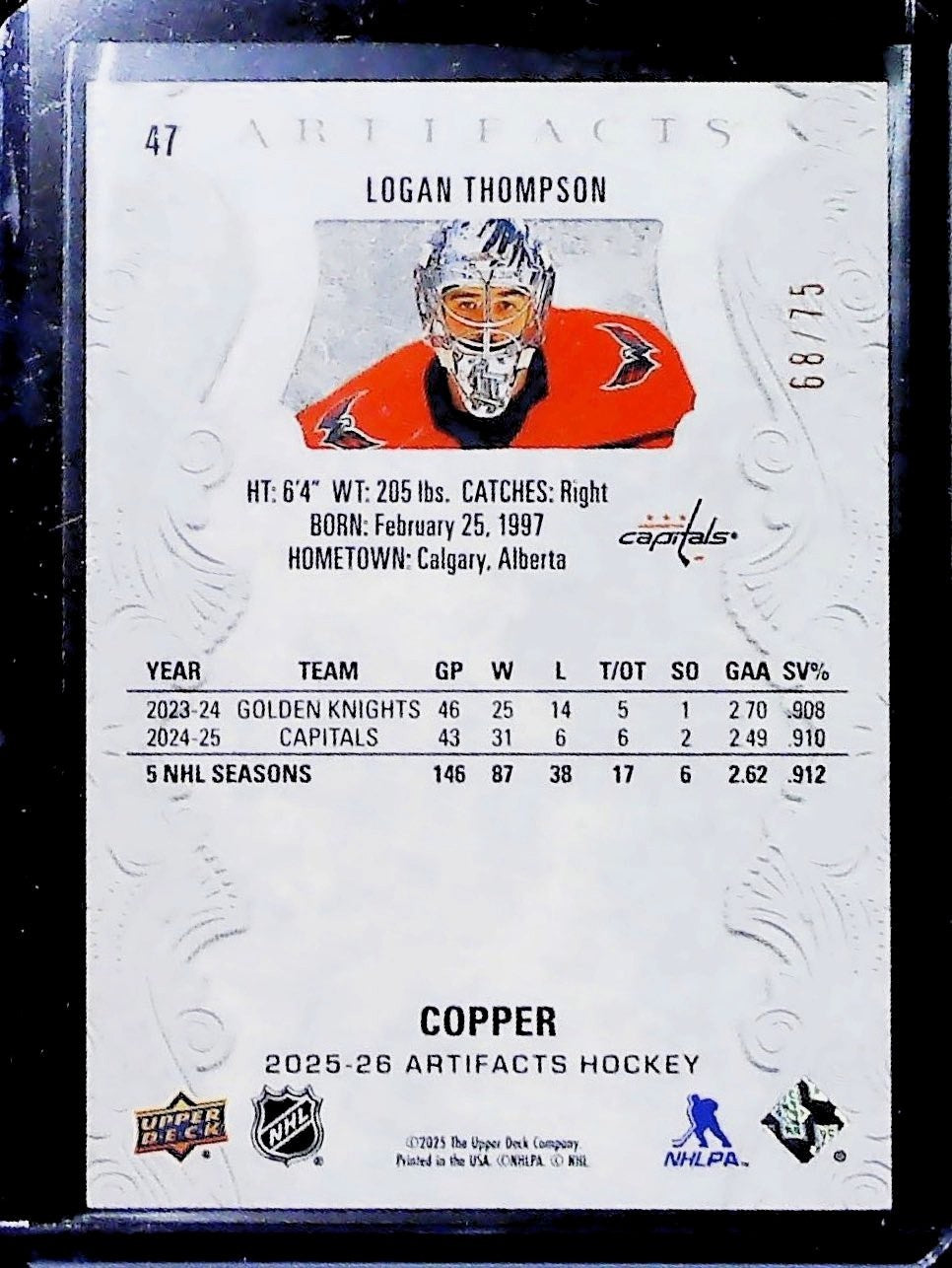 2025-26 Upper Deck Artifacts Hockey Logan Thompson Copper /75 CAPITALS