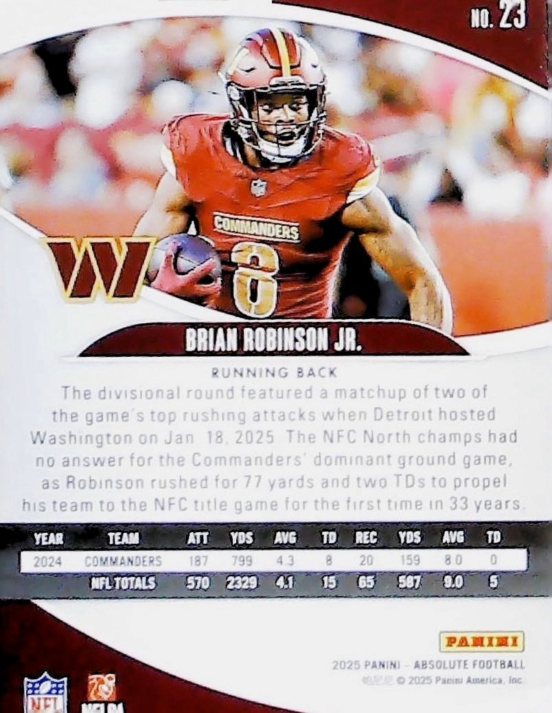 2025 Absolute Football Brian Robinson Jr. Spectrum Blue /50 49ERS0