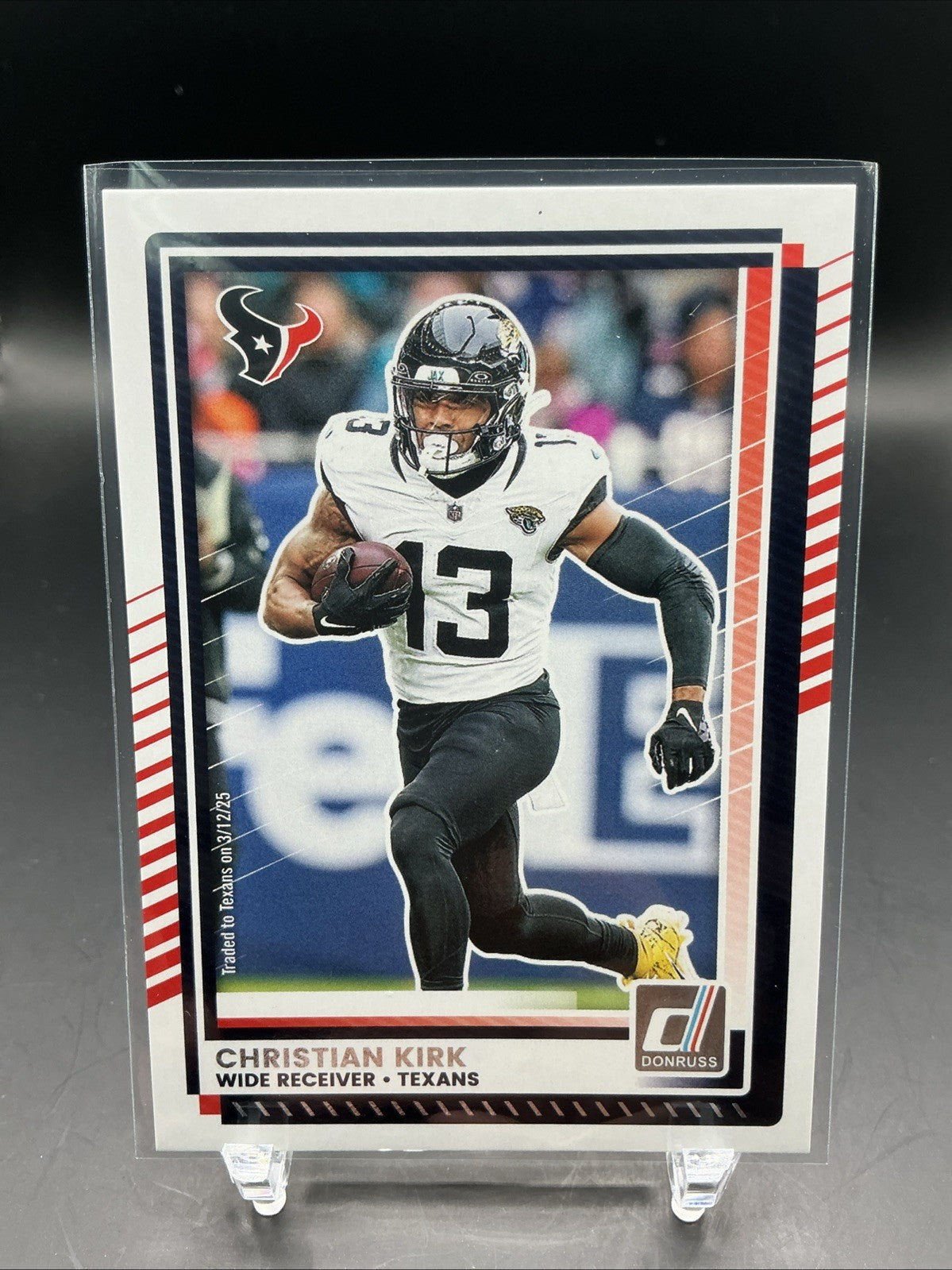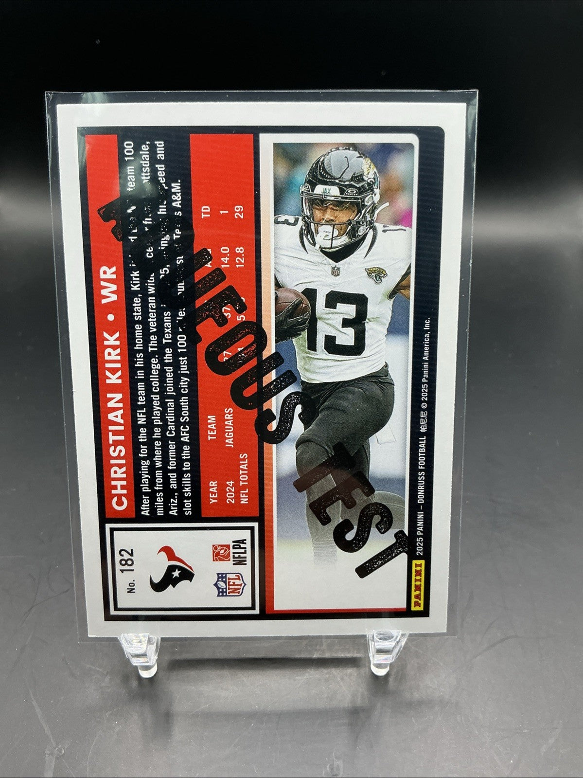 The 2025 Donruss Football Aqueous Test trading card featuring Christian Kirk (#182) from the Houston Texans is a rare and sought-after collectible item for football enthusiasts. This unique card, part of the base set for the 2025 Donruss series, showcases a parallel/variety design that sets it apart from the rest. Perfect for fans of Christian Kirk or collectors looking for rare trading cards, this item is a valuable addition to any sports trading card collection.