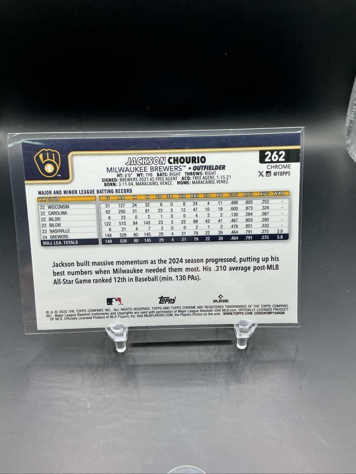 2025 Topps Chrome Baseball #262 Jackson Chourio Aqua Ray Wave /199