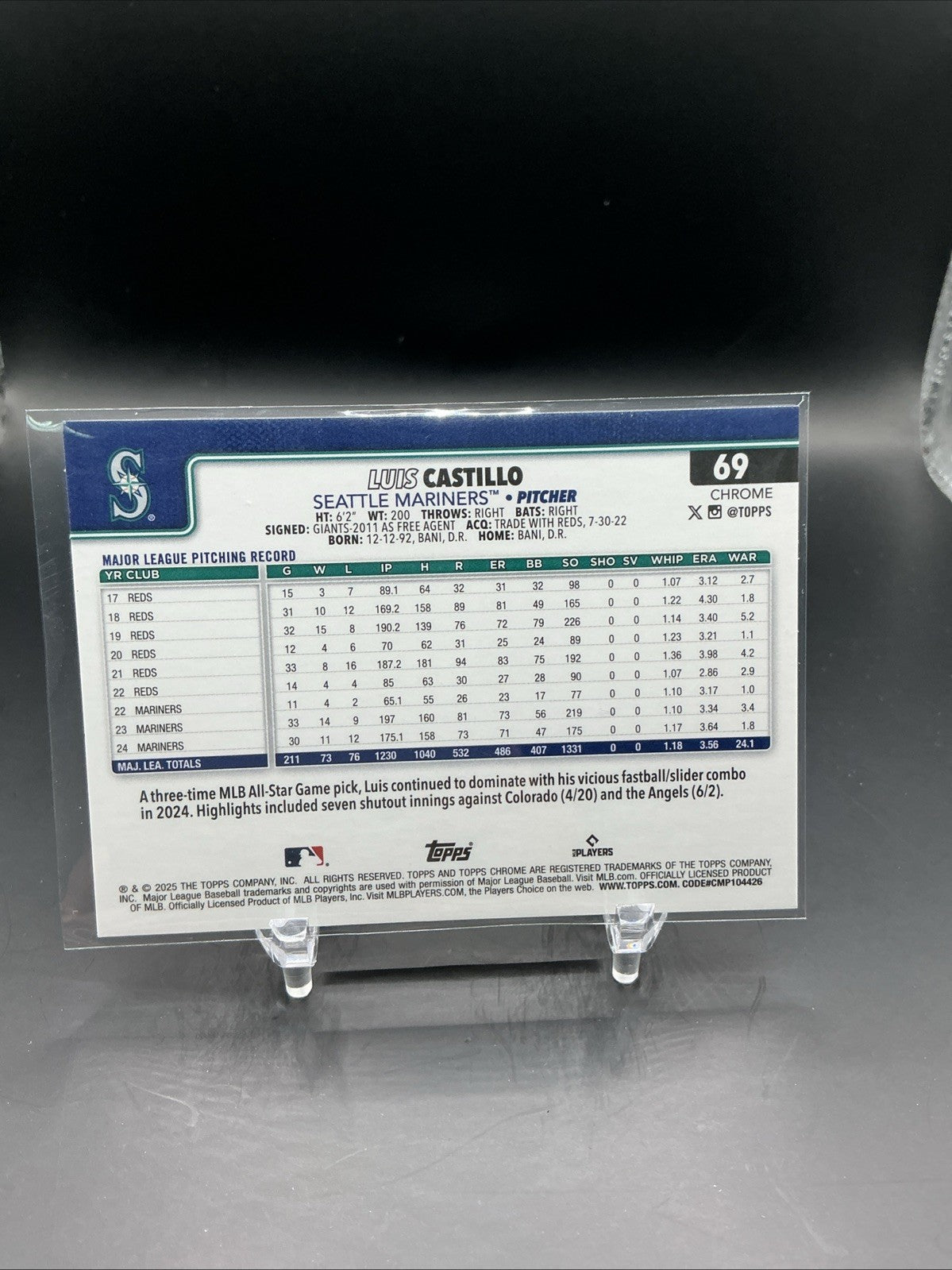 2025 Topps Chrome - Luis Castillo Blue Lava Refractor /150 #Mariners #69